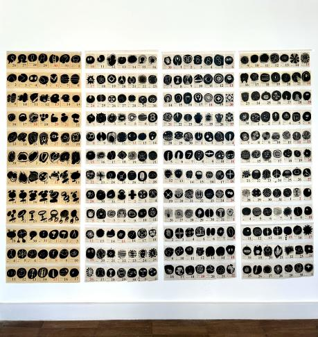 克裏斯蒂娜·巴羅佐 日曆,2000-2025,和紙、曆頁油彩,150 x 200 cm
